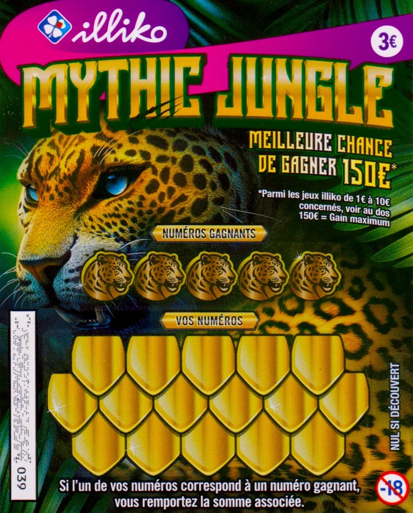 Pour tous les fans d’animaux sauvages et de safari animalier, il y a désormais le ticket à gratter Mythic Jungle ! Depuis le 29 septembre, FDJ United propose ce nouveau ticket très « graphique » sur le thème de la jungle et avec une belle promesse à la clé = la meilleure chance de gagner 150 euros à un jeu de grattage illiko !